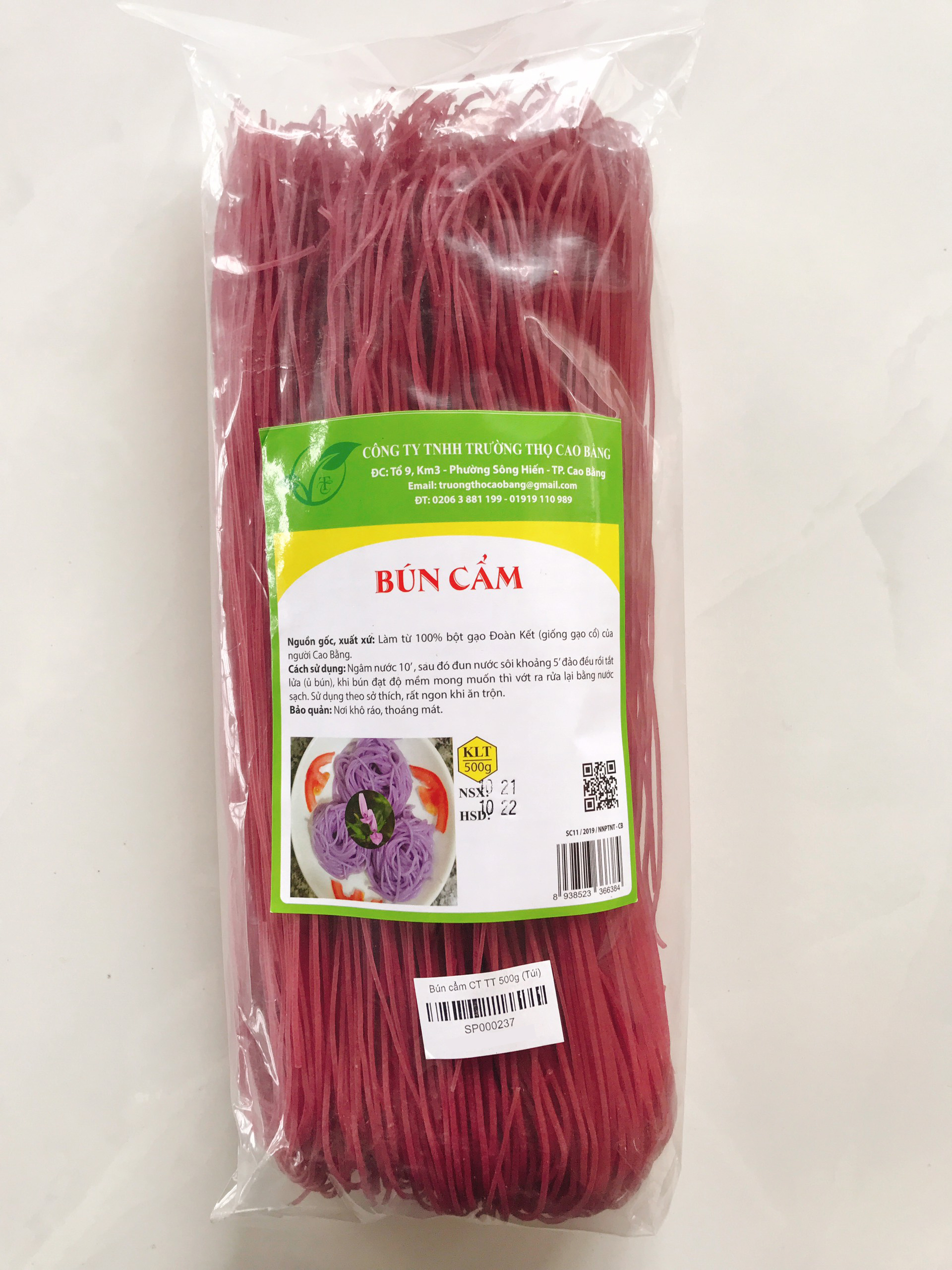 Nguồn gốc xuất xứ: làm từ 100% bột gạo Đoàn kết (giống gạo cổ) và lá cẩm của người Cao Bằng