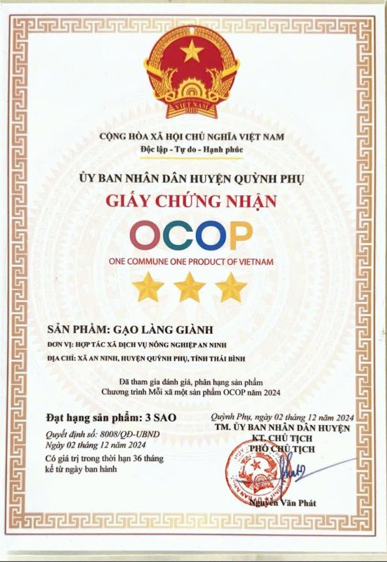 Đặc điểm: Gạo Làng Giành nổi tiếng là một sản phẩm gạo truyền thống, được sản xuất theo quy trình nghiêm ngặt từ khâu gieo cấy đến đóng gói.